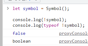 console.log(typeof !symbol); //boolean